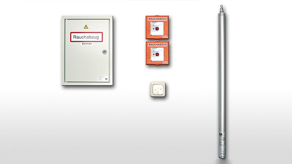 - Une unité de commande centrale pour un maximum de deux moteurs avec possibilité de commande de déclenchement pour boutons poussoirs d’ECF, préparée pour touches de ventilateurs et divers appareils complémentaires comme les détecteurs de fumée, les alarmes thermiques * ou les sondes de vent et/ou de pluie* (*en option)